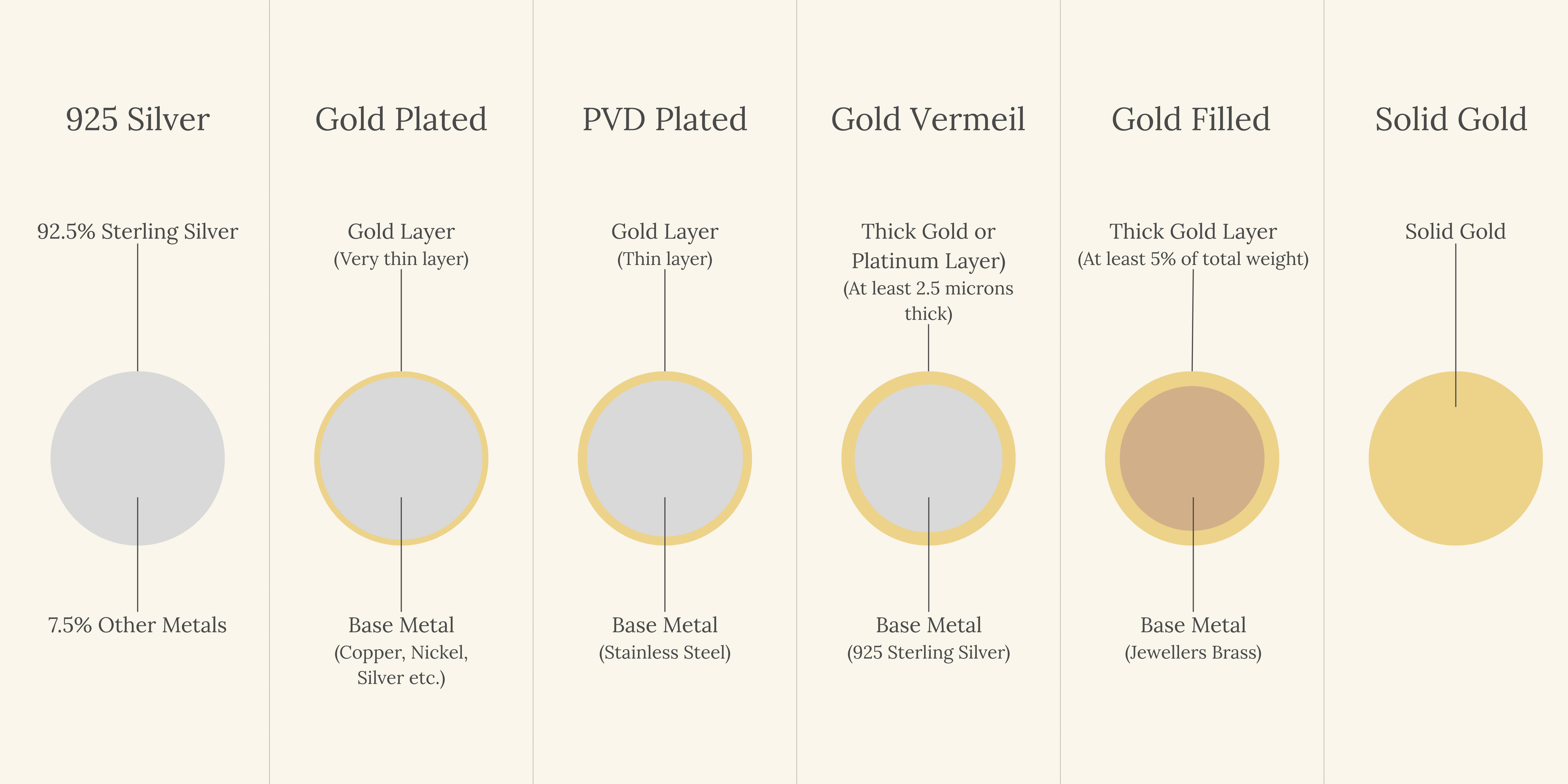 Gold Vermeil is a premium type of gold plating that uses a thicker layer of gold, applied over 925 sterling silver. For it to qualify as vermeil, the gold layer must be at least 2.5 microns thick. This makes gold vermeil more durable and tarnish-resistant than regular gold plating, and it has a longer lifespan. The thicker gold layer also makes it more resistant to wear and fading. Like sterling silver, gold vermeil is generally hypoallergenic and a great option for those with sensitive skin. It's also more resistant to tarnishing and is perfect for those who want a luxurious gold look without the high price tag of solid gold.