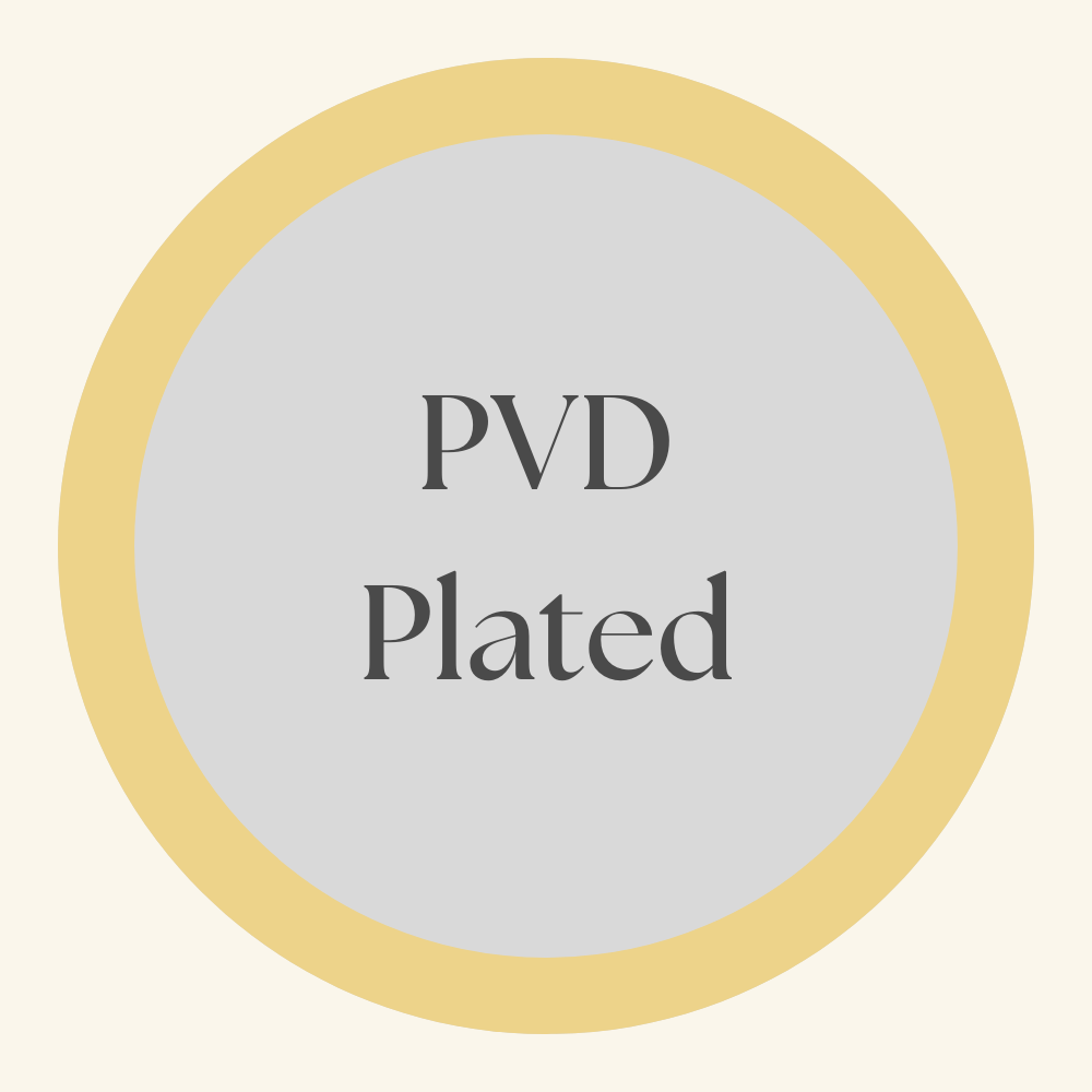 PVD (Physical Vapor Deposition) gold plating is a modern method of applying a thin layer of gold to a base metal through a high-tech vacuum process. This technique results in a more durable, wear-resistant finish compared to traditional gold plating. PVD gold-plated jewellery is often hypoallergenic and is less prone to tarnishing or fading. It’s also resistant to scratches and more waterproof and sweatproof than standard gold plating. The enhanced durability makes PVD gold-plated jewellery a fantastic option for those who want the gold look with a longer-lasting finish at a more affordable price.