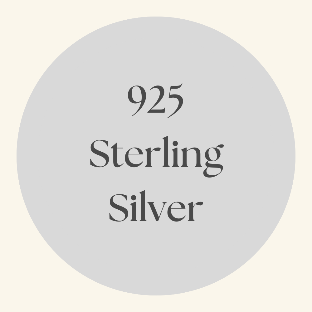 925 sterling silver is made up of 92.5% pure silver and 7.5% other metals, usually copper, for added strength and durability. It’s a high-quality material that offers a bright, shiny finish but may tarnish over time, especially with exposure to air and moisture. However, it’s easy to polish and restore to its original gleam. Sterling silver is hypoallergenic, making it a great option for those with sensitive skin. It’s also versatile, lightweight, and affordable, offering a good balance of quality and price. Our 925 Sterling Silver pieces are coated with Platinum to give a brighter shine and some extra protection.