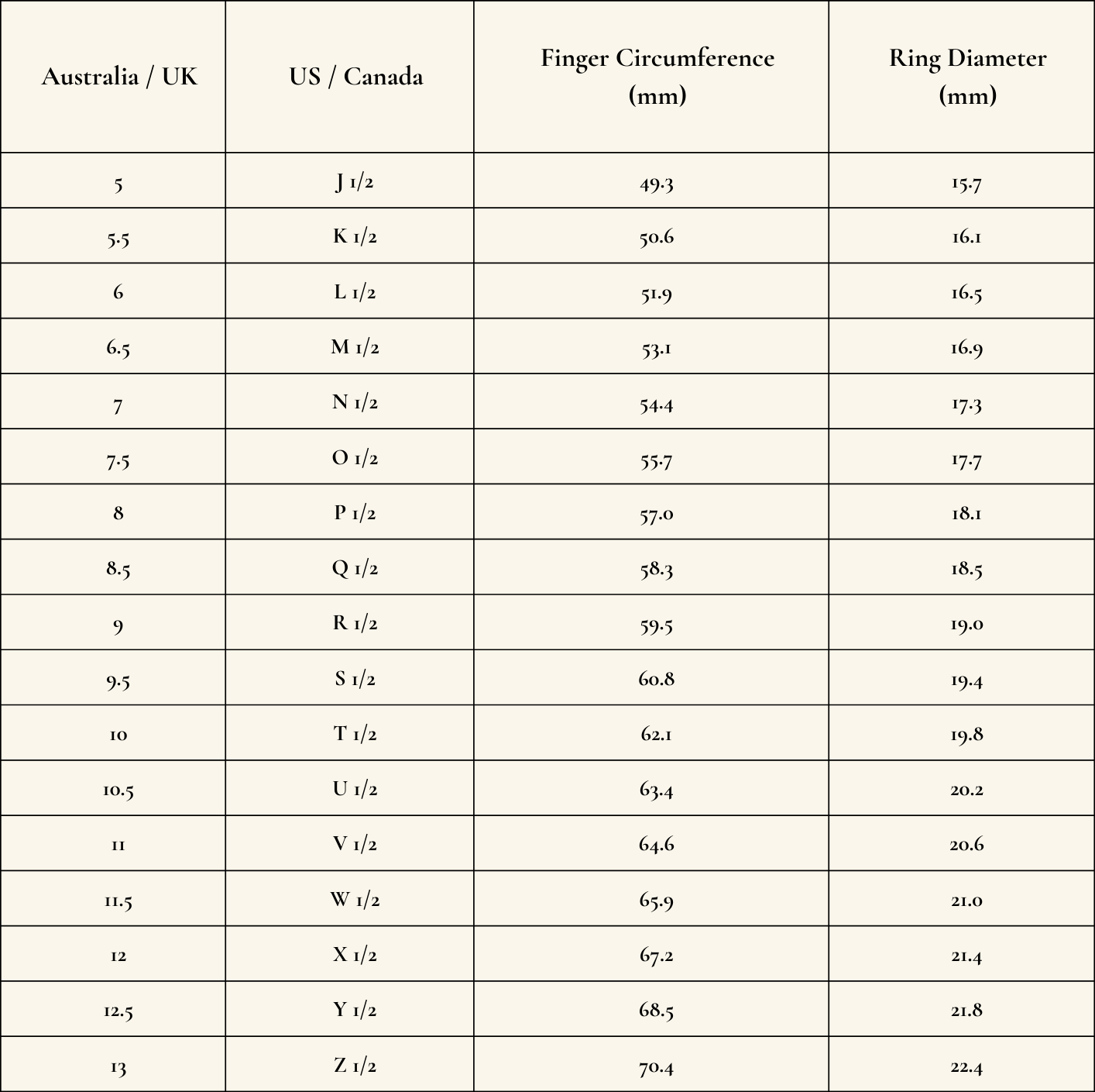 There are two ways to measure find ring size - Inside Diameter and Finger Circumference